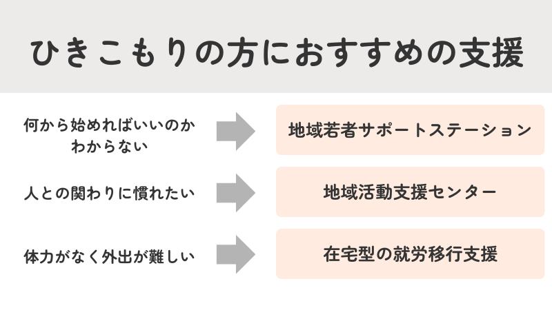 - ひきこもりの方におすすめの支援